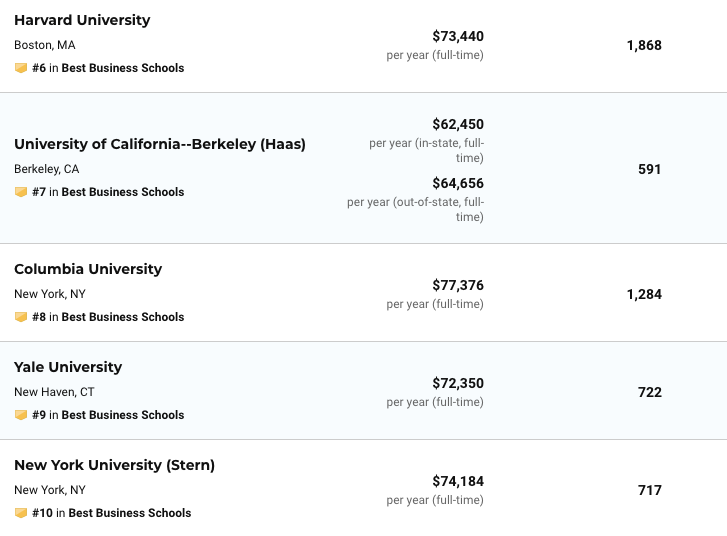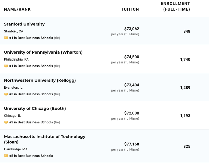 西北大学凯洛格商学院连升3名与芝加哥大学布斯商学院并列第三,纽大Stern商学院也上升2名进入Top10行列。