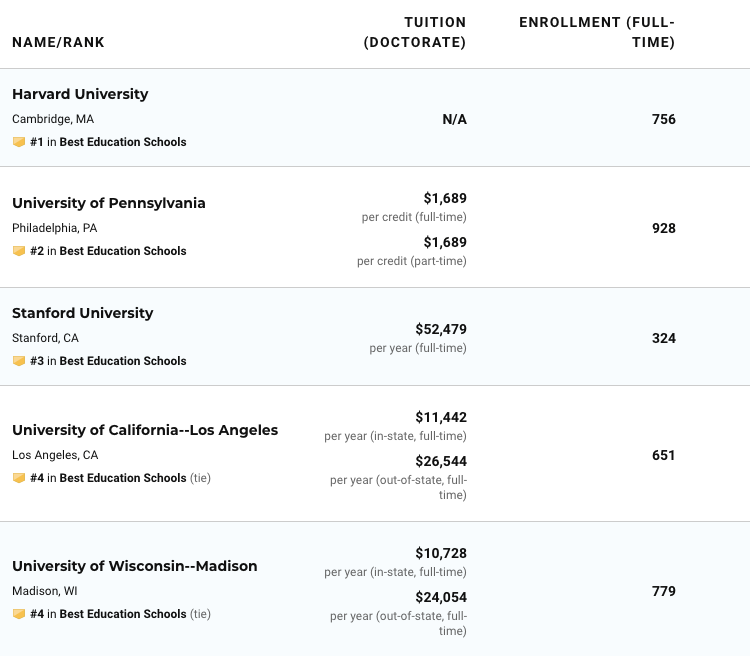 教育学院排名前二的仍然是哈佛大学和宾夕法尼亚大学,斯坦福大学今年独占第三。