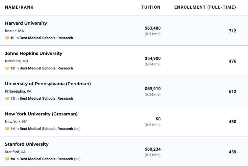 与去年一样,哈佛大学医学院继续排名第一,约翰霍普金斯大学医学院位列第二。