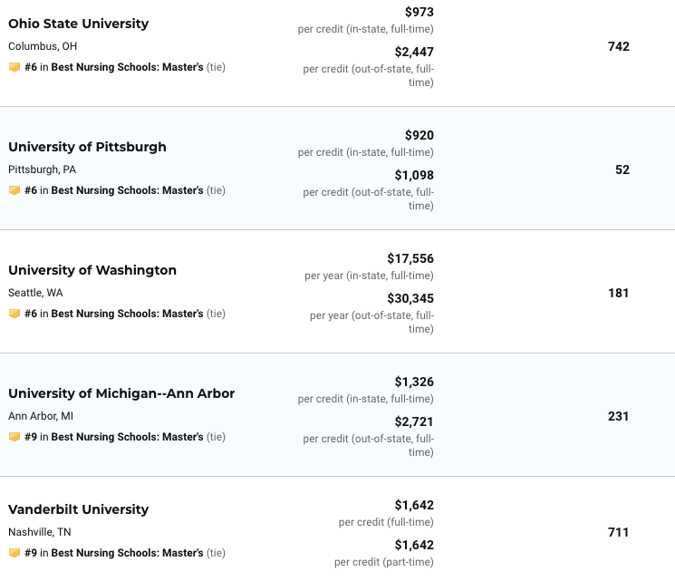 和往年一样,U.S.News继续公布以商业、法律、教育、工程、医学和护理六大方向为主的项目排名及细分排名。