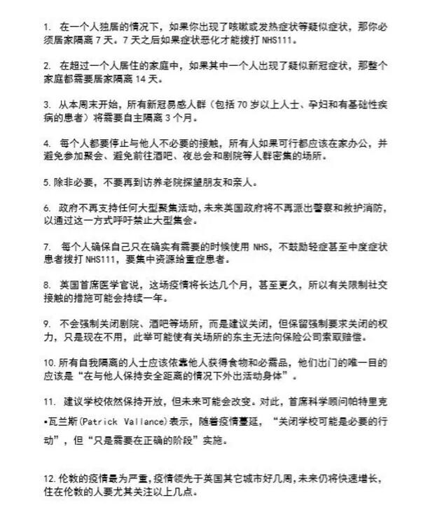 鲍里斯提出了一系列措施,让民众保护自己。英国最新出台的抗疫措施包括:
