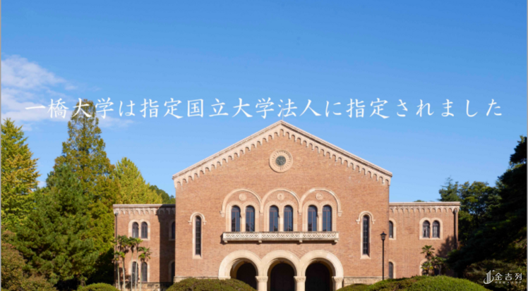 一桥大学前身为1875年由森有礼及福泽谕吉创设之商法讲习所,1920年改为旧制东京商科大学,是日本旧三商大之一,1949年改为新制大学并易名"一桥",2004年改为国立大学法人。当今的一桥大学已成为日本顶尖商业人才的摇篮,于就业方面具有压倒性的优势。同时一桥大学以少人数的精英教育闻名,不以人数计而以比率计算的话则在就业率、国家考试通过率等于日本名列前茅。就职方面则多年蝉联周刊钻石社的"就职有力大学排行榜"的冠军,并以相对稀少的毕业人数却于全世界CEO出身大学排行榜位居全球43名。知名校友涵盖前日本首相大平正芳、前东京都知事石原慎太郎、乐天株式会社创办人三木谷浩史等。