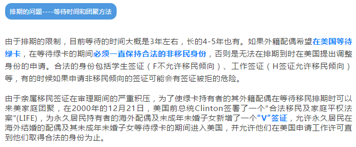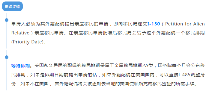 注:美国绿卡持有人担保配偶来美团聚是有排期的。