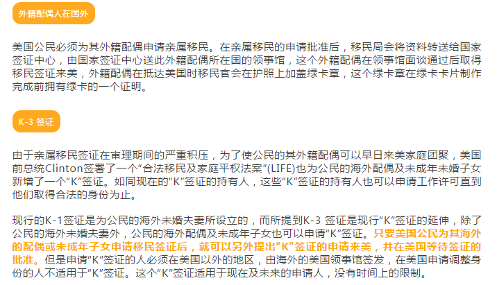 注:美国公民担保其配偶来美团聚是没有排期的,但有被担保的配偶申请人有在美国境内还是美国境外之分。