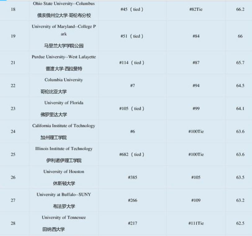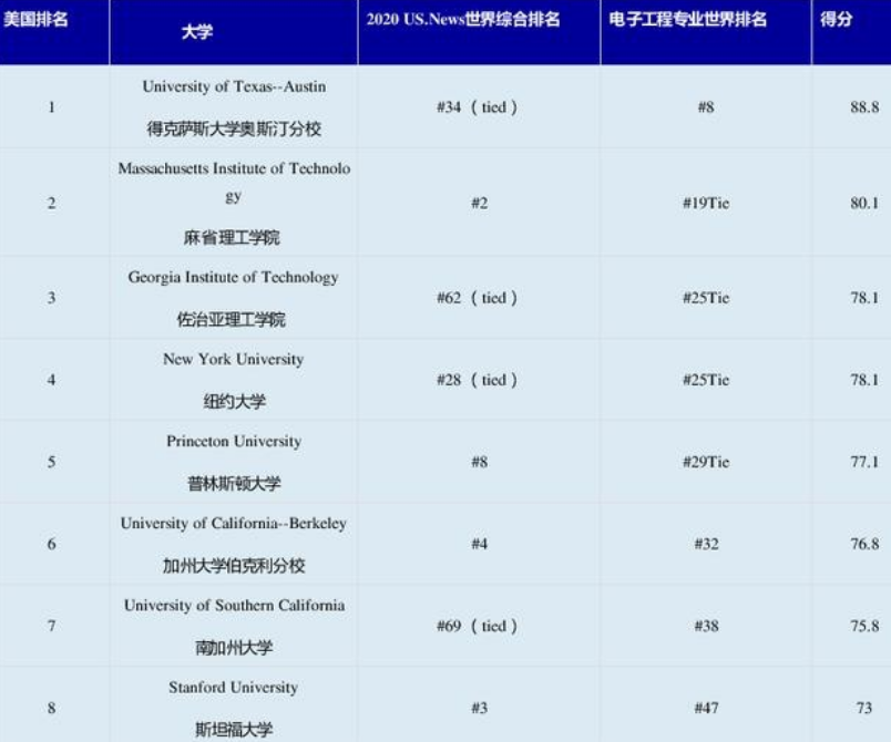 2020年US News美国电气电子工程专业Top30排名