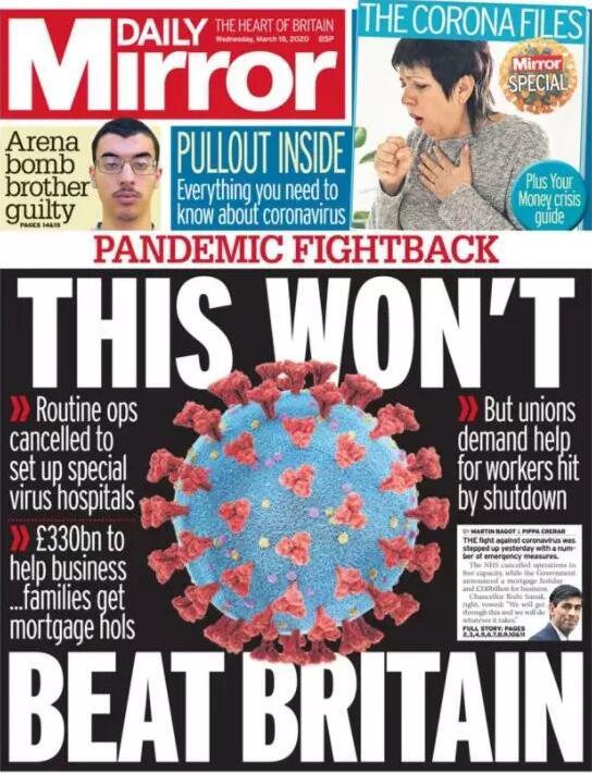 《镜报》的头版则采用大字标题 “This won't beat Britain” (这不会打败英国)