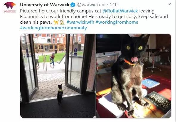 华威大学的 校猫 Rolf 也已经离校开始在家“办公”。