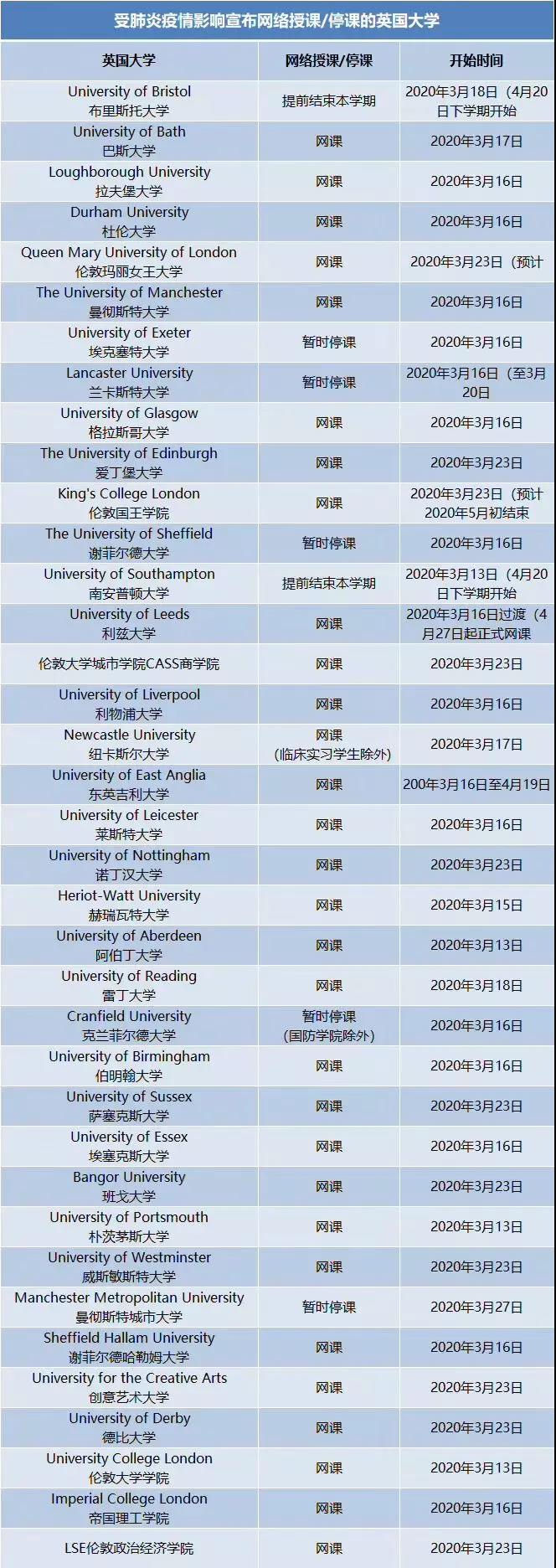 英国大学疫情政策一览表