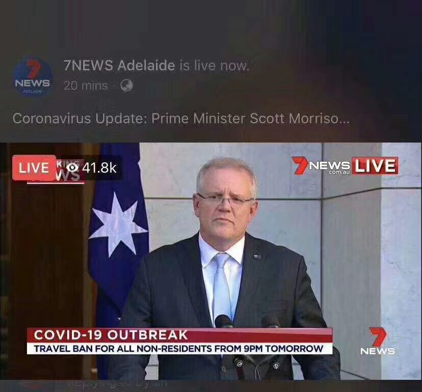 这些新限制将于3月20日(星期五)晚上9点生效。所以如果学生们无法在今天(3月20日)晚上9点之前到达澳大利亚,只能返回中国,该禁令时长并未公布,所以哪怕之前确实有在第三国中转14天后顺利入境的留学生,但是在这样的政策下,非澳洲公民、居民是不能入境的。