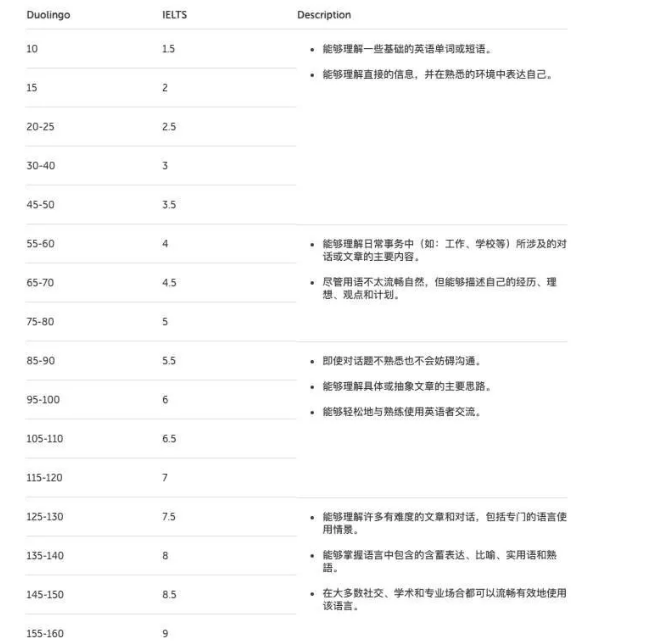 这里需要补充说明的是,2019年7月15日之前的多邻国测试为100分制,2019年7月15日之后的多邻国测试为160分制。100分制以1分为单位,160分制以5分为单位。分制的改变,是为了配合新的评分测试项目和评分方法。