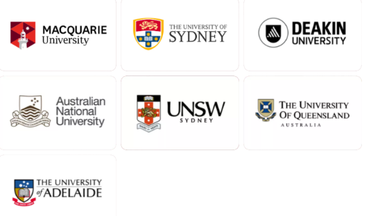 MQ,UNSW,Syney University,Deakin,UQ,UoA,ANU