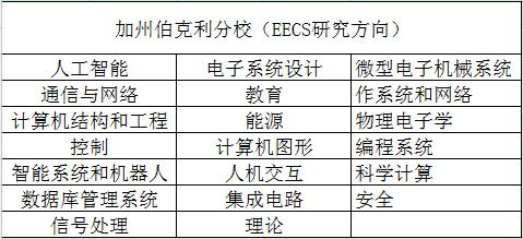 Berkeley的Electrical Engineering an Computer Science(EECS)拥有一长串的荣誉奖项,在EECS学术界有着非常强的影响力。 该院系有500名硕士研究生和博士研究生,其研究方向有20个分支: