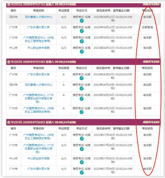 以广东省为例, 截至发稿前, 5、6月的考位都已经满了,7月考试暂时还有名额。