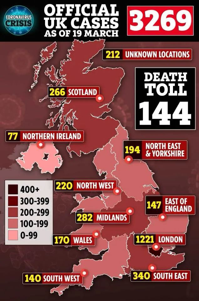 目前英国因新冠肺炎死亡的人数已经升高到137人。新增加的33例死亡病例年龄在47岁到96岁之间。