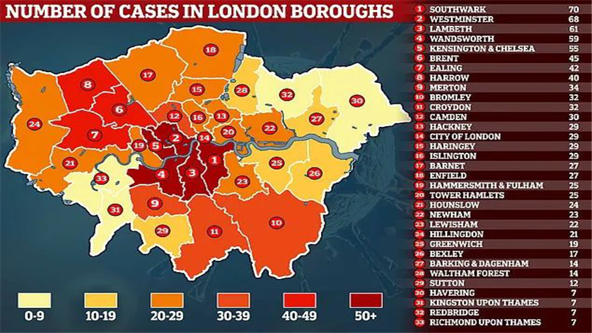伦敦是目前英国疫情最严重的地区。伦敦地区的感染人数和死亡人数,各占全英国感染人数和死亡人数的1/3。
