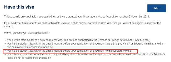 you hel a stuent visa within the past 6 months before your application an you now hol a substantive visa