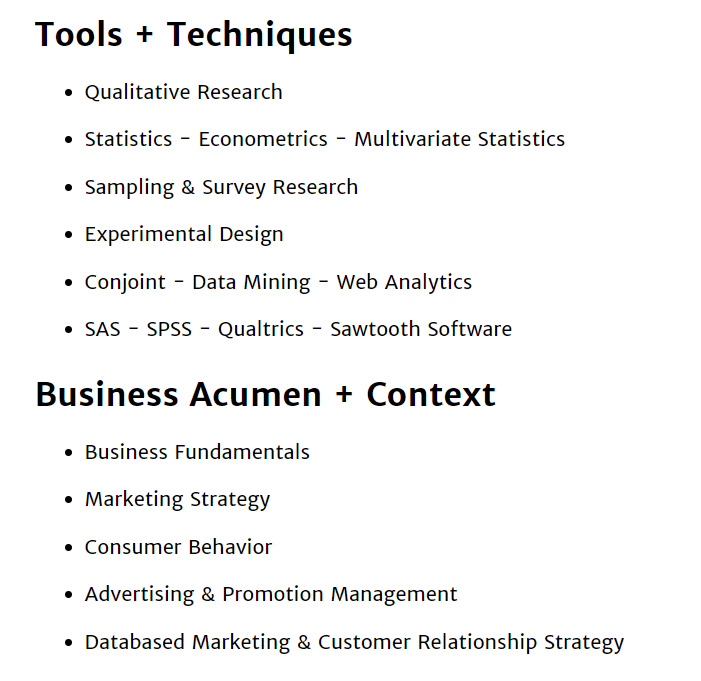 MMR学生通过了高入学要求才能被录取,然后沉浸在严格的学术课程中,并动手使用与市场研究行业用于指导业务决策的相同分析工具和研究方法。除了研究工具外,我们的计划还强调业务应用,学生在营销策略上具有扎实的基础。