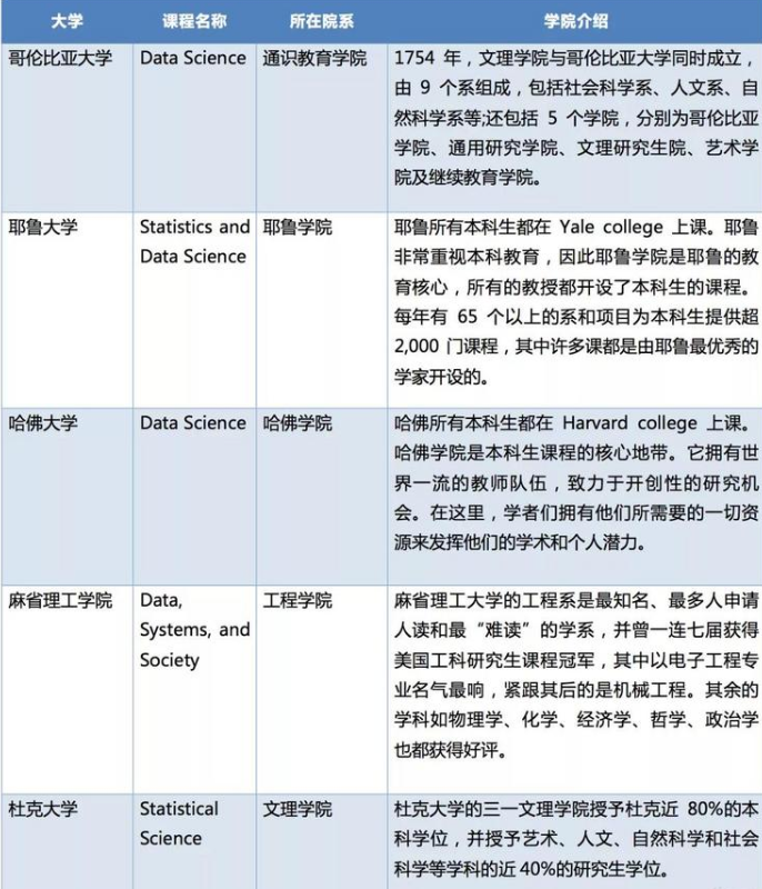 在过去的几年里,除了伯克利以外的很多美国大学也为了响应各行各业大数据的热潮,而在各校推出了几十个数据分析的课程项目。以下是夏老师为大家整理的前五大学的数据科学相关课程以及所在学院的介绍。感兴趣的同学可以参考!