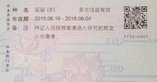 逗留签注(D签) 国家机关发给经香港或者澳门有关部门批准在香港或者澳门就学、就业、培训的人员及其家属。逗留签注为多次签注,出境有效期根据香港或澳门有关部门批准期限签发。逗留签的有效期一般为一年,期间可无限次往返香港和内地,逗留签办理好后要注意上面的信息是否正确。