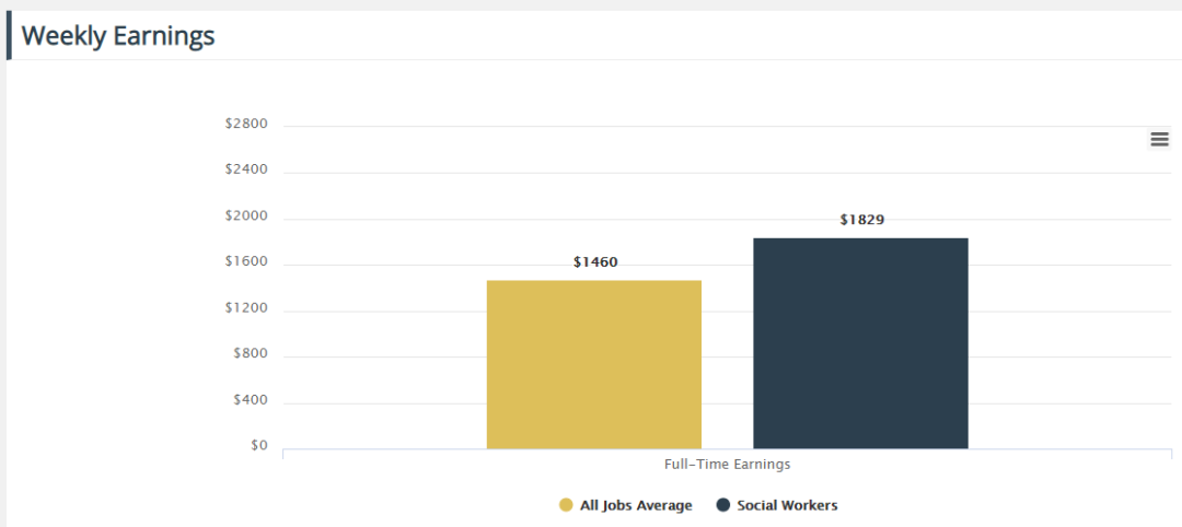 根据统计,澳洲社工的平均工资是$1829/周,高于澳洲平均工资水平$1460/周。
