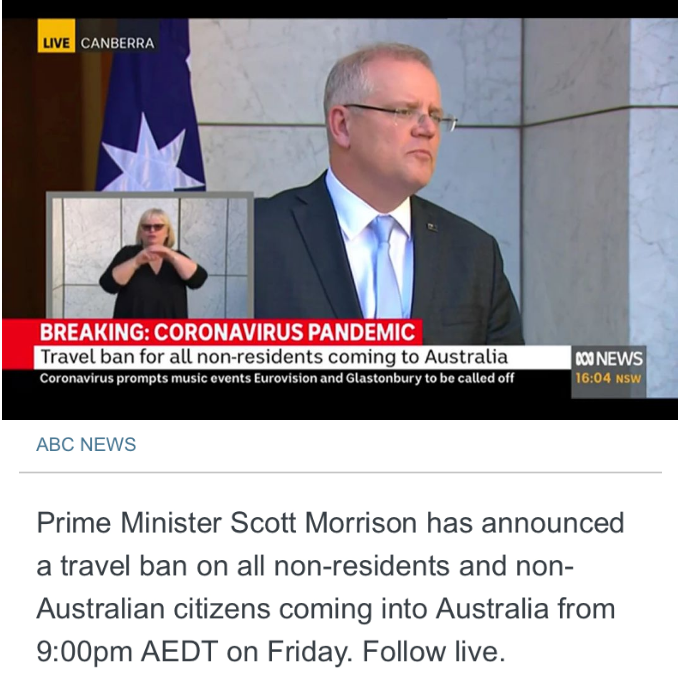 莫里森总理刚刚宣布了最严禁令: