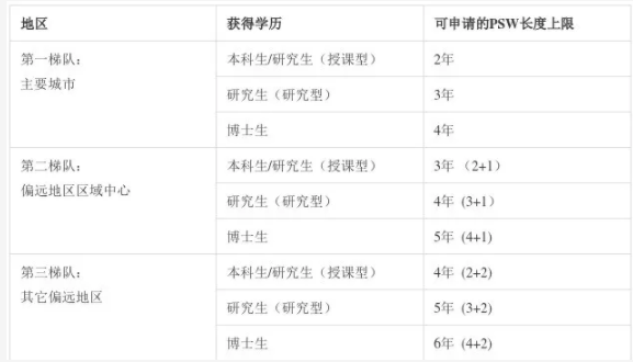 其中对留学生的最大利好是:博士可获得长达4年的PSW工签。