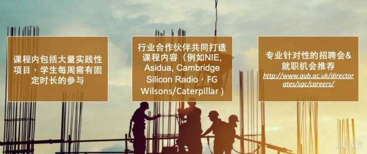众多BEng/BSc学生会在学习期间进行 带薪资的一年全职实习 ,知名企业雇主包括: Liberty IT, Asiua, Kainos, IBM, Microsoft, Sun Microsystems, Fujitsu和Sie mens 等。