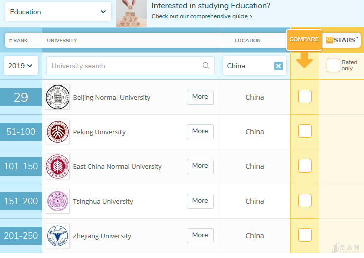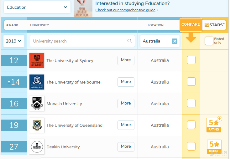 根据2019年最新QS教育学专业世界排名列表显示,其中澳洲有5所大学位列前30,中国只有1所大学位列前30,可见澳洲大学教育学的实力。