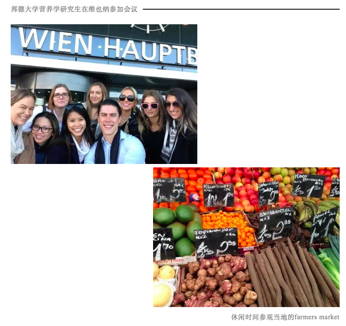 往届营养学研究生的全体学生,通过专业中的国际营养研究实习项目 (International Nutrition Practice )参加过多个国家和地区的实践和研究活动,包括在维也纳召开的第三届 国际营养学会议 和马来西亚 营养研究活动。