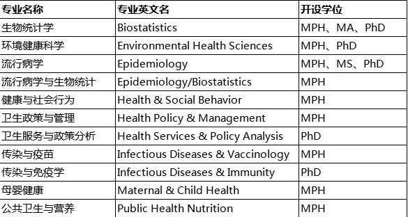 1)加州大学伯克利分校的公共卫生学院开设以下专业