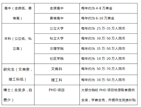 美国院校众多,由于大学性质、办学层次和地理位置的差异,其学费标准各有不同。