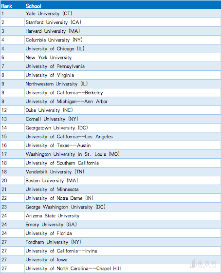 排名中,除杜克大学下跌2位,跌出榜单前十,其余院校排名变动并不大。值得一提的是,波士顿大学排名上升3位,冲进前二十位置。