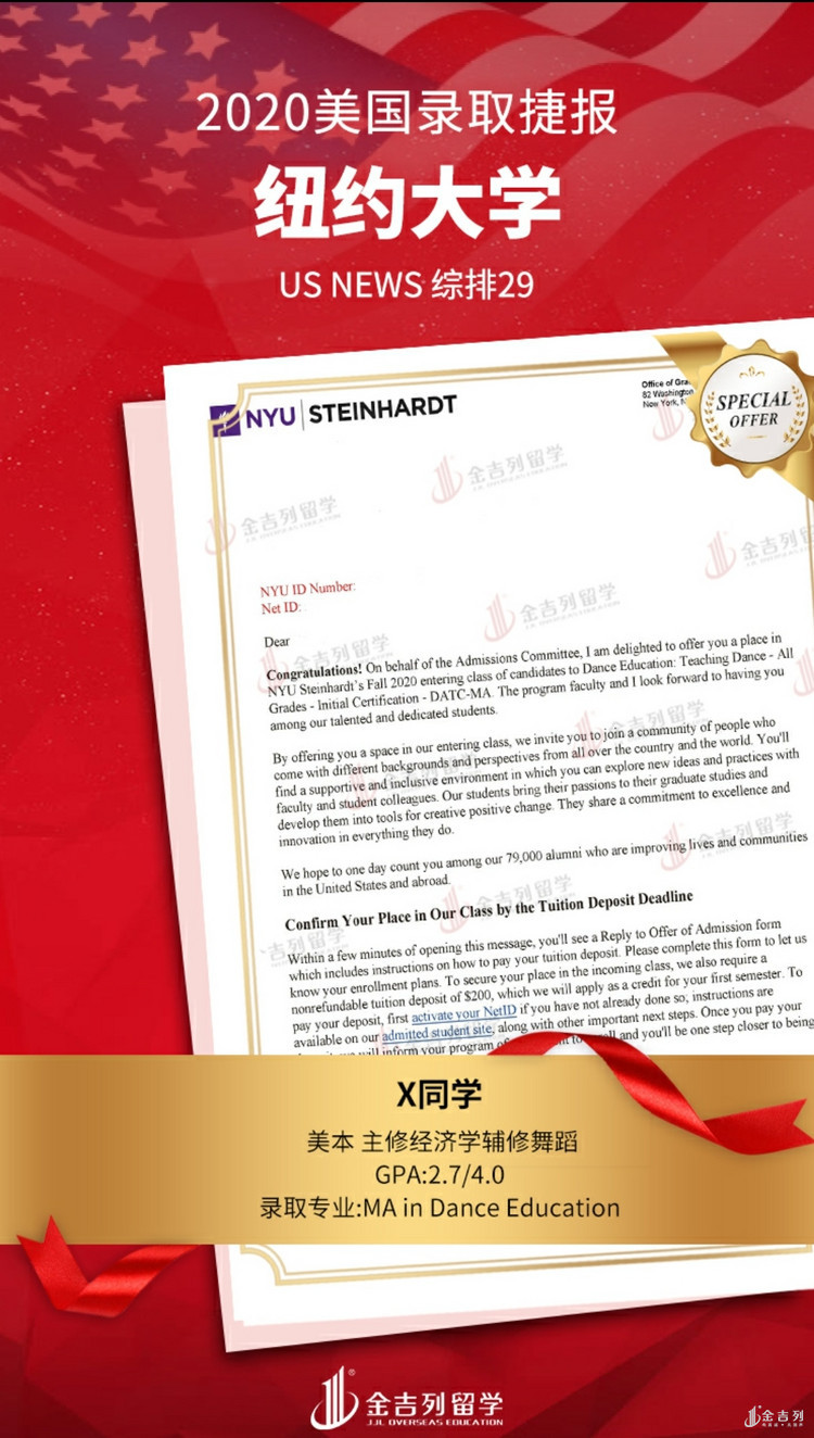 纽约大学Tisch艺术学院是美国著名的艺术学院,杰出的艺术家都深造于这所大学,其舞蹈系是一所专业舞蹈系部,教学师资力量雄厚,学生专业基础扎实,课程设置严谨并有追求方向:围绕怎样有效开发舞蹈演员的表演、创作及理论研究潜能。平时学校会有高水平的舞蹈演出,针对本校的学生票价比较低廉,只需12美金,如果有学生想申请这所学校,可以多观看几场学校的演出进而了解学校的教学情况。Tisch的舞蹈专业硕士项目需要修读两年,第一年主要是专业课的学习,第二年每一个学生都会有一个指导老师,针对学生的潜能确定研究方向。因为是顶级的专业学校,申请要求比较高,要求托福成绩总分为100,同时要求入校面试。