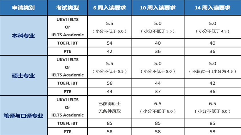 3.语言课接受普通雅思、托福、PTE等"非UKVI雅思"申请