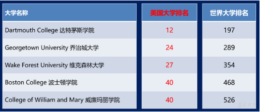 相反,也肯定有在美国大学排名中表现远比其世界排名高很多的大学,就算强如常青藤盟校的达特茅斯学院在世界排名中也只能到200左右: