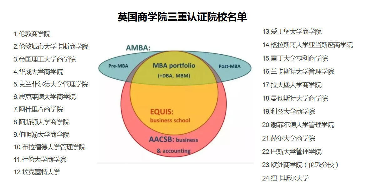 其次AMBA是英国人制定的一套标准,总部在伦敦,这个认证里面的有MBA招生必须有两年+的工作经验的硬条件的,所以美国很多高校都没兴趣。