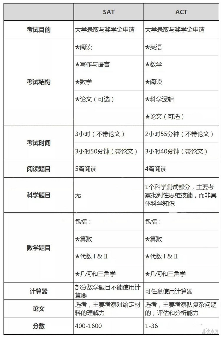 SAT和ACT基本信息对比:
