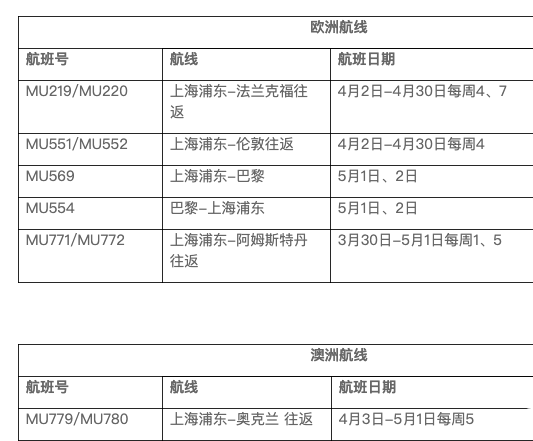 3月25日,东航方面发布通告称,根据新冠肺炎防控形势,为进一步做好疫情防控工作, 东航计划取消中国来往欧、美、澳部分航班,共涉及20个航班,北美航线最多,占据14个。