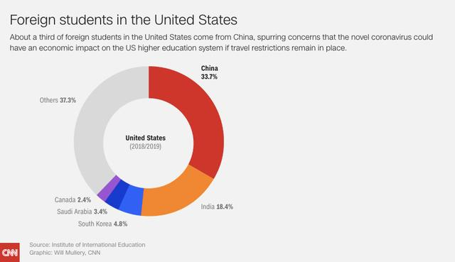 此外,受旅行禁令的影响,很多中国留学生无法返校,对美、澳这些依赖中国留学生的国家来说,这更是雪上加霜。