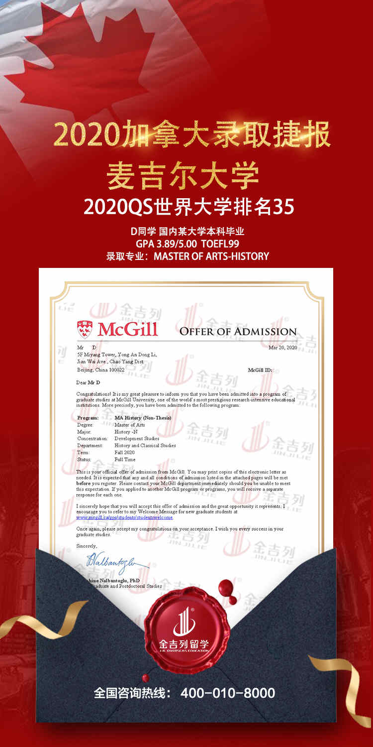 恭喜董同学被麦吉尔大学文学院录取。今天宋老师就和大家分享下董同学的成功案例。