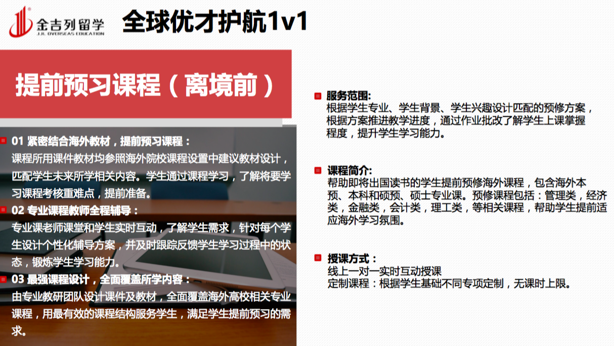 以上是金吉列留学全球优才海外学术辅导的介绍,那么对比其他机构的课程,我们的课程: