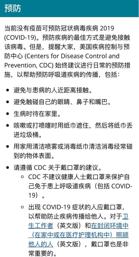 美国疾病控制与预防中心(CDC)官方指南中有关《CDC指南》的相关内容均来自美国疾病控制与预防中心的官方网站( www.cc.gov ),消息截至2020年3月25日,相关解释以CDC官方发布的最新资讯为准。