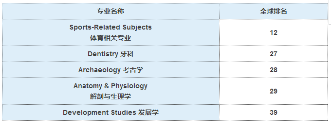 - 其他优秀专业包括:牙医学排第27位、考古学排第28位、解剖学排第29位、生理和发展科学排第39位。