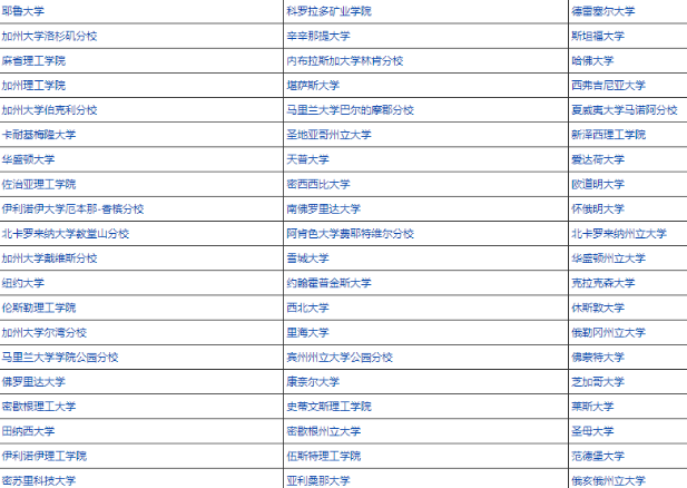 美国研究生开设此专业的学校列表