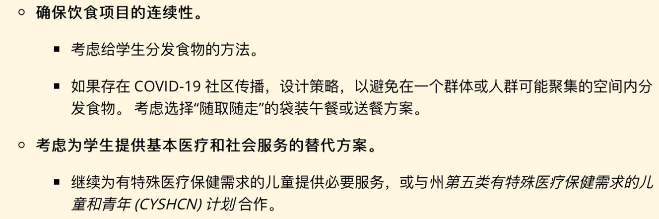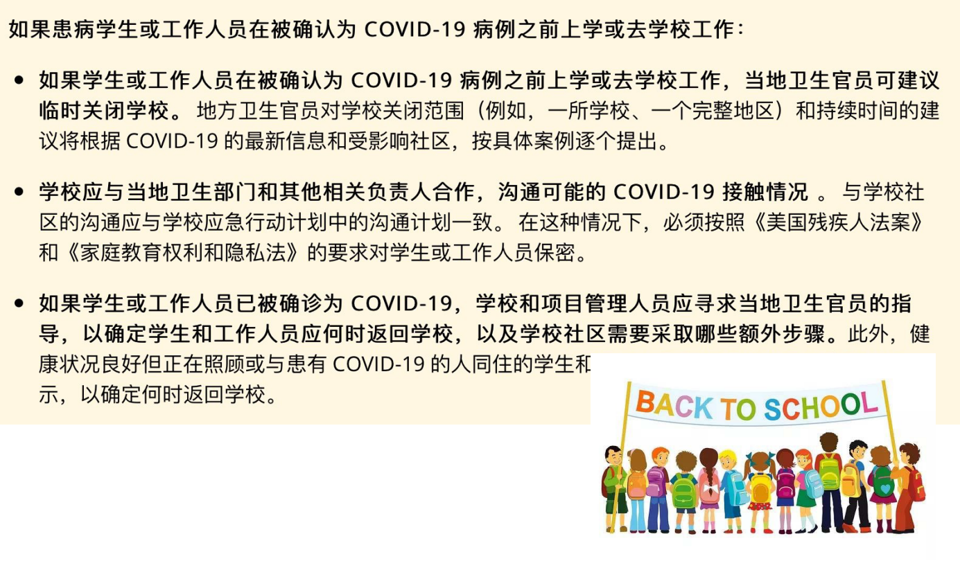 美国中学的停课和复课规定因学校网络教学设施、整体教学安排、区域疫情发展情况等条件不同而存在较大差异。有的学校已经决定停课至本学年结束,并同意学生返回中国,通过网络教学完成本学期的学业;有的学校则尚未作出决策。对于停课的学校,开始复课时通常情况下,学校会要求学生必须返回校园并停止网络教学,国际学生也不例外。具体学校规定,建议学生随时和学校DSO老师和指导顾问保持密切联系。