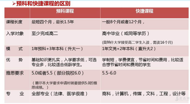 1, 高二毕业学生通常读慢班预科(1年-1年半),高三毕业学生通常读快班预科(1年以内)。