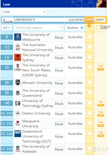 其中,悉尼大学、新南威尔士大学,澳国立大学的法律专业比北京大学的排名更靠前。