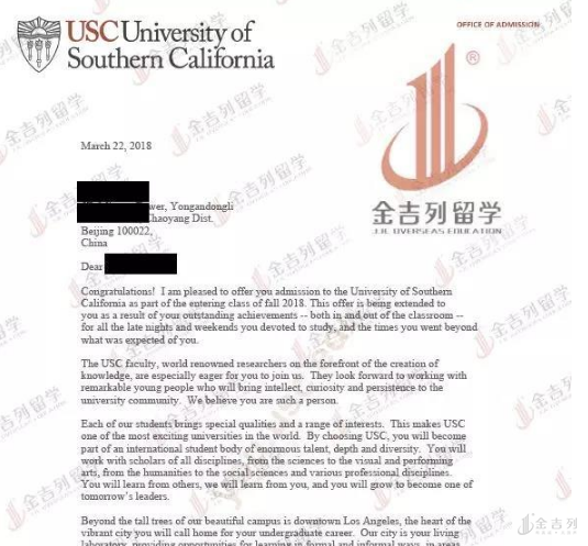 出国留学等级: 大学本科级新生录取结果: University of Southern California、New York University