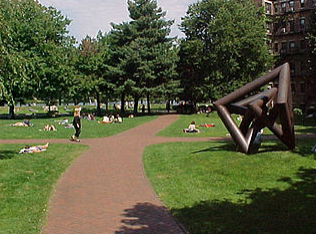 BU的主要校园建筑与人流密集的Storrow Drive公路相距不远,沿着附近的Charles河沿岸的Charles River Esplanae绿地和Paul Duley White Bike Path 隔开,Storrow Drive是连接波士顿市中心与其市区的高速有限通道西部郊区。分离发生在1920年代后期,当时马萨诸塞州联邦夺取了重要领土的土地,用于沿河岸修建新公路。沿着英联邦大道两旁的BU学术建筑与Storrow Drive上的交通洪流之间的狭窄草皮被幽默地称为“ BU海滩”,因为它是晒日光浴的最爱聚会场所天气好的时候。懒洋洋的学生受到凸起的土制护栏的保护,免受交通侵扰,这也使交通噪音变得沉闷起来。为了保护行人免遭车辆碰撞,斯托罗驱动器被栅栏围起来,人行天桥允许在Silber Way和Marsh Chapel安全穿越。在BU桥处可以有一个额外的过境点,这也使街道交通从查尔斯河的波士顿一侧横穿剑桥一侧。