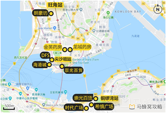 作为游客赴港血拼化妆品的主要战场,购物清单上的绝大多数化妆品,从日韩美妆到欧美大牌,从小众到爆款,化妆品连锁店都有大量存货。进店时拿个筐子,选完后一并结帐,便能一站式买齐化妆品。这些连锁店遍布全港,尤其在繁华的尖沙咀、铜锣湾、旺角等地,说“几步一家”也不为过。